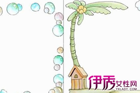 但要注意的是,椰子树的叶子尽量画得长一些,有一种要把整个手抄报罩住的感觉。第三种花是画浅绿色的叶子,在手抄报的四个角都画上小叶子,只是右上角和右下角的叶子稍微多一些。注意画叶子的时候,都是朝四条边的方向延伸的。画好之后还是要给叶子涂上颜色,浅绿色的颜色会让整个画面显得很清新。第四种花边是用一个大的花瓣的轮廓把整个手抄报环绕起来,再在花瓣的外侧周围画上一些点缀的东西。注意在画花瓣的时候最好用铅笔先描,尽量把花瓣的每一个瓣儿画得流线性好一些。【女物原创未经允许,谢绝转载!】