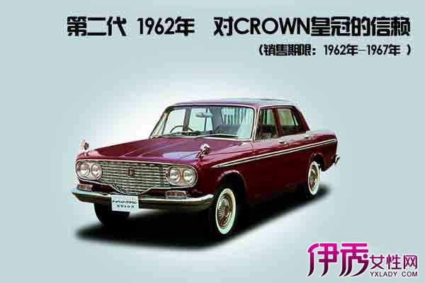 1962年上市的第二代,在第一代的基础上底盘和外观方面的尺寸被放大,但是其整体结构形式是没有太大变化的,仍使用着承载式的底盘设计,而该设计一直延续至后来第九代时才被替换下来。初期被称为“泪目”的尾灯和以丰田的第一个字母“T”为主题的硬铝制前脸设计是主要特征。