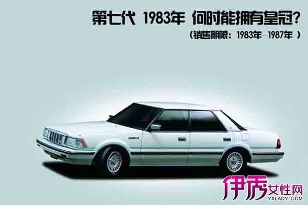 1983年“何时能拥有皇冠”已经成为日本人的口头禅。同时皇冠也发展到了第七代,开始新的设计元素如珍珠水晶式C柱设计,废除上代的前叶子板倒后镜设计,彻底脱离了“老爷车”的风格。由于第七代皇冠在日本上市之初就开始进口到国内,因此在我国的保有量十分之大,1985更是皇冠七代在我国的顶峰时期,成为了我国豪华轿车的标准,在80年代中后期,在北京地区就有颇为之多的“豪华的士”就是七代皇冠。