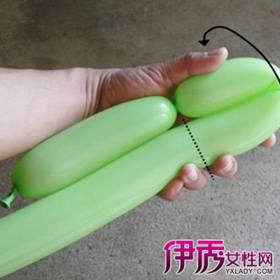 3.最后的结果。通过你刚才的一扭,气球变成这样两段式。需要注意的是图中的手这时要同时抓住气球的两段,如果放开的话,气球就恢复原状了——白扭了。