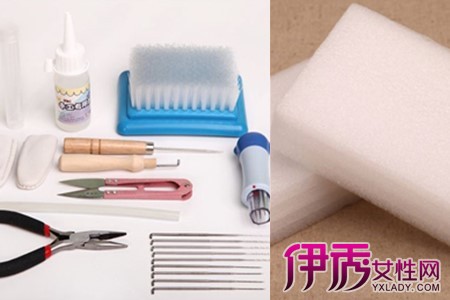 戳针,最重要的工具,是这个手工最必不可少的工具,它有粗、中、细、极细四种,可以分别用于不同的要求的塑形;工作垫,保护桌子和使戳的时候更方便,最常见和最便宜的材料是发泡式泡沫,但毛刷垫也是不错的选择;剪刀,用来剪断羊毛和进行一些成品的修剪;锥子,用于穿孔,利于装眼睛等;胶水,将一些配件固定好。