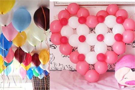 第三,有独特造型的气球放在客厅里。现在气球可以被扎成心形,花型的,放在沙发上或者床上。