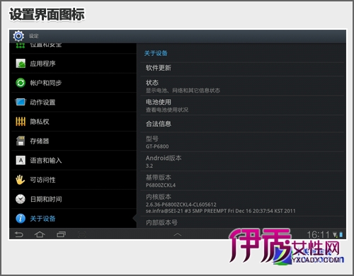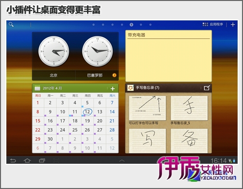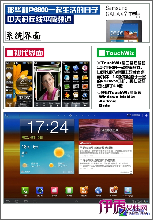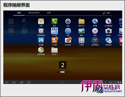 一款产品除了硬件部分之外最重要的就是操作系统,三星P6800平板采用的是经过深度定制的Android3.2系统,其中加入了其看家的 TouchWiz界面,这个如果笔者没记错的话应该是从三星09年推出的WM智能手机i900上开始使用的,经过这两年来的进化已经发展到了现在的4.0 版本,同时也愈发华丽愈发好用起来。