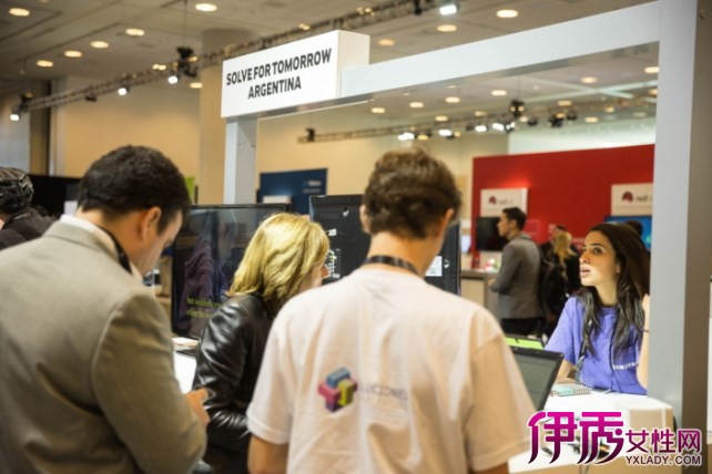 探知未来阿根廷组的一名学生正在向开发者们阐释自己的获奖应用程序