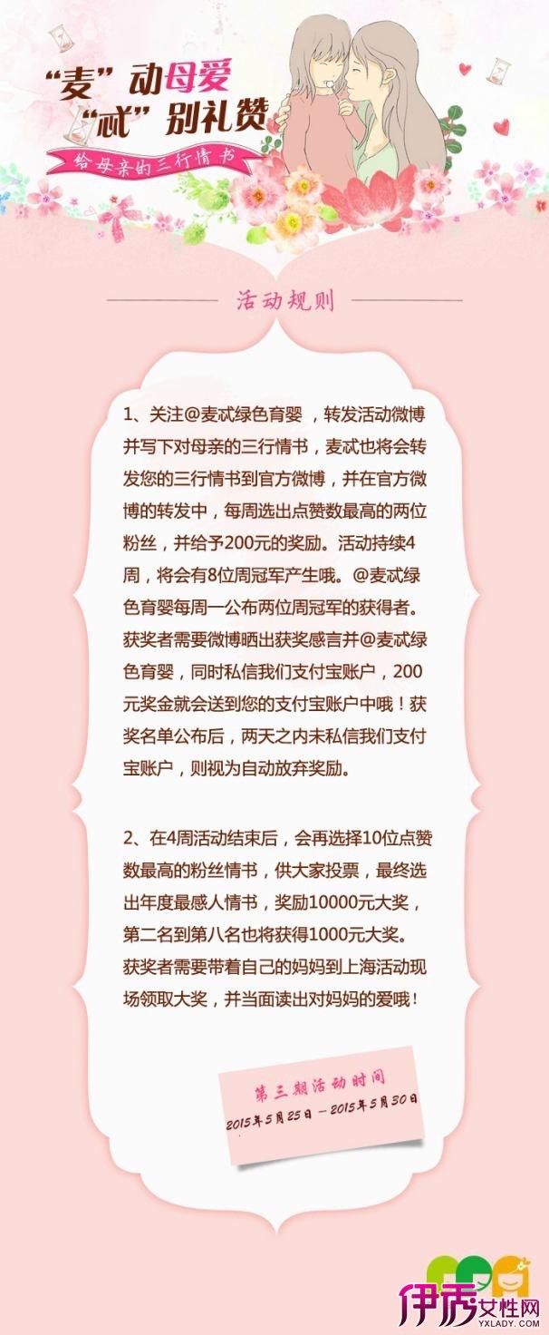@麦忒绿色育婴 #麦动母爱,忒别礼赞#第三期微博活动正在进行中,快趁这个机会来给自己的母亲写下三行情书,只要你的情书足够打动网友,你就能收到一份意外之礼。