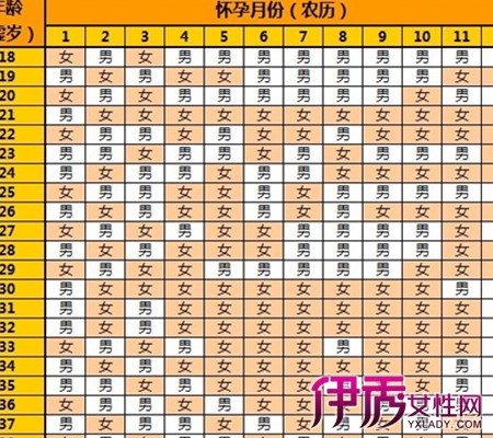 生男生女表预测表:女性年龄是以农历虚龄(即真实年龄加1岁)算,而怀孕月份即是受孕的那个月份,当然亦是以农历算.