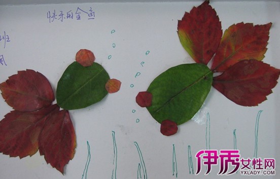 因为树叶不容易服帖,胶水少了不爱粘。干燥的树叶在涂胶之后吸收水分,会变的不那么脆,贴的时候也不容易掉下来。最后再用彩笔稍作修饰,一副树叶贴画就做好了。第一张是一张孔雀。尾巴是从下向上一层一层粘贴的。羽毛是用月季花叶子和瓣做的,上面点缀了小冬青的叶子。很有层次感吧。