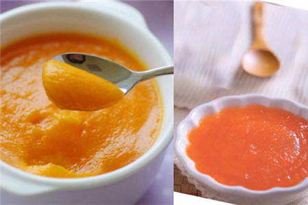 一、胡萝卜苹果泥米糊。将胡萝卜隔水蒸熟,苹果削皮后切块,一同倒入料理机打成泥。精米洗净后浸泡3小时以上,放入豆浆机或料理机中打碎并熬制成糊状,倒入胡萝卜苹果泥即可。胡萝卜和苹果富含多种维生素,对宝宝的视力发育有很大的好处,同时口感酸甜清新。