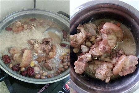 猪蹄炖花生是我们常常做的食补之一,但是你知道吗?其实,猪蹄炖花生也是一种下奶的好东西。第一种猪蹄炖花生的做法非常简单,首先,购买好新鲜的猪蹄,用沸水将猪蹄煮到七八分熟,大概需要二十分钟,再将生花生洗干净。把煮好的猪蹄和洗干净点花生放进锅里炖半个小时就好了。