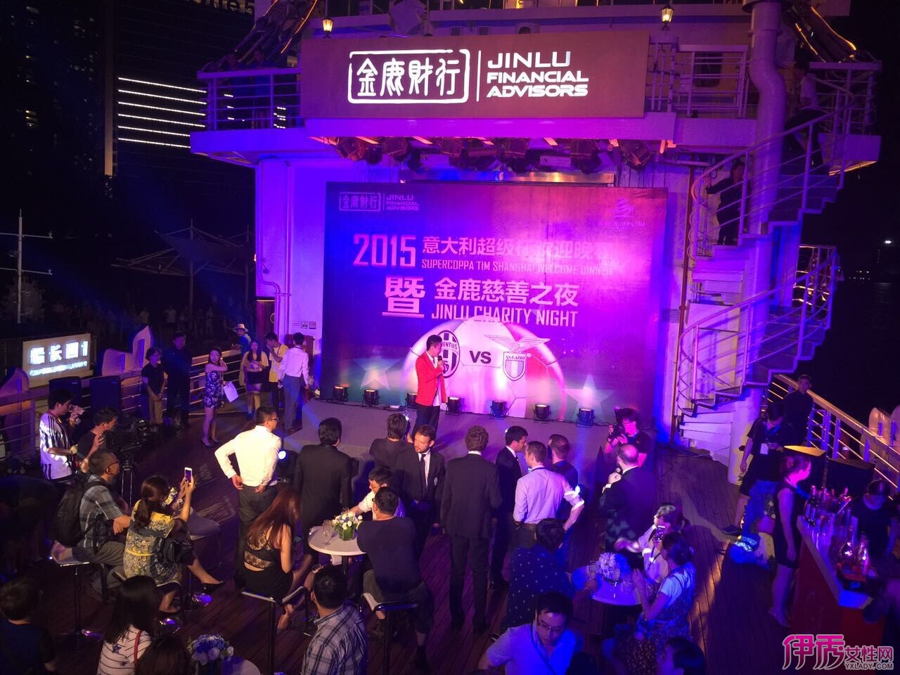 8月4日晚,由金鹿财行主办的 “2015TIM意大利超级杯 金鹿财行VIP游艇酒会在上海黄浦江游船上隆重举行。作为2015TIM意大利超级杯“尤文图斯VS拉齐奥”正赛前的精彩活动,中外球星与主办方领导、VIP嘉宾齐聚黄浦江上,共享两岸美景。 在8月8日即将于八万人体育馆上演的“尤文图斯VS拉齐奥”2015 TIM意大利超级杯前夕,旨在通过本次慈善晚宴,将体育精神与企业责任相结合,向社会传递金鹿财行推崇的慈善和体育的结合之美,为热爱足球的贫困山区孩子创造一片“新的绿茵”。