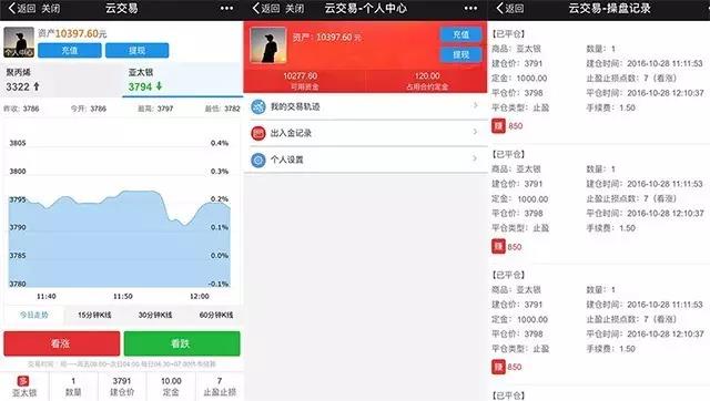 注意:1.无需押金、保证金; 2. 18个小时交易,操作机会多;3.不同于传统交易,云交易大小行情均可获利,只需看涨看跌即可;4.无杠杆、系统自动控制风险,自动平仓,风险小,无需担心爆仓。