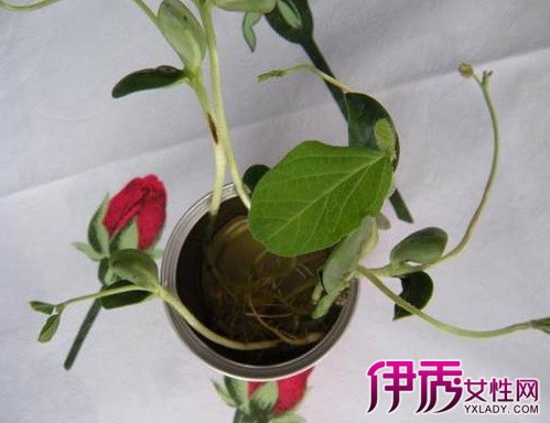 把几颗黄豆芽(这时已长出叶子,根很长了)转到一个盛满水的B杯子里。