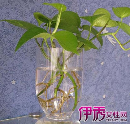 五、装盆和灌液1.装盆植株诱导出一定数量根系后,说明驯化成功,已能够适应水中生长了。此时可根据个人喜好装盆种植。选择容器时,根据定植篮大小、植株大小、根系发达情况,选择种植容器的大小及形状等。把种植好的定植篮放于容器口,再将石英石、斧劈石、鹅卵石等碎块放在定植篮内的根系上,以加固根系,避免倒伏。种植后的绿萝和容器高度比为1:2。