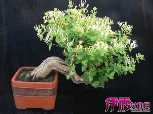 3、修剪后处理。金银花树桩一般不带土团移栽。根和枝干修剪后,最好先放进水中浸泡1~2小时,让其吸足水分,加快萌发新根和新芽,用白乳胶涂抹枝干伤口,用新净毛笔蘸0.3%~0.5%高锰酸钾溶液涂根部伤口,再上盆栽植。4、上盆。金银花对土壤不苛求,但最好使用山泥或以山泥为主加适量腐叶土、煤球灰等配制成培养土。上盆时间以早春为宜。悬崖式,垂枝式金银花盆景宜配用形式古雅、优美的高深盆盎,有利于枝蔓散披,表现婀娜风姿;曲干式金银花盆景宜配用较浅的圆(椭圆)形或长方形陶盆或釉盆。