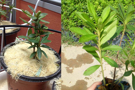 3、与其他观花植物不同的是,杜鹃苗木在生长的过程中需要保持土壤的湿润,因此水分一定要及时地补充。如果植株缺水比较严重的话,可能根须会出现萎缩甚至是干枯的情况。朋友们可以每天傍晚给苗木浇水,这样能让杜鹃的小苗变得更加繁茂。