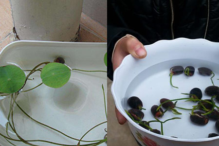 2、一般三天左右,莲子就会裂开,并从中长出很小的小芽来。朋友们再等待十天左右,朋友们应该就能看到有叶片长出来。等叶梗已经长到十厘米的时候,朋友们就可以将其放在比较大的容器之内,而且还要在容器中多加入一些清水,这样才能让荷叶长得更大一些。
