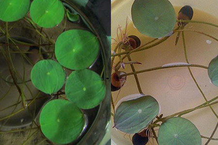 3、将已经长出叶片的荷花放在比较温暖的环境之中,并将其放在直射的阳光下。一般在两个月左右,朋友们就能看到水培的荷花长出了更多的叶片,而且看上去枝繁叶茂。如果在其中加入一些沙粒的话,就能将种子固定在容器的底部,这样植株的造型才会变得更漂亮。
