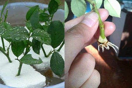 3、在废弃的泡沫片上钻出一个洞,然后将晾干的枝条穿入其中,并放入盛满水的容器之中。一般耐心等待一周左右,月季就会长出新的根系来。当月季长出新根之后,朋友们就可以重新将其栽培到土壤之中,这样月季就能起死回生了。