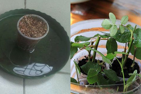3、朋友们再准备一个比较大的透明容器,然后将原来扦插好的枝条放入大容器之中。在大容器的边缘,朋友们还要留出通风口,这样能起到保温保湿的作用,对于促进枝条生根发芽非常有好处。