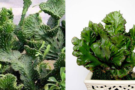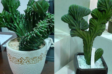 玉麒麟属于大戟科,是多肉植物中的一种。它们的叶片与枝茎已经高度肉质化,看上去造型很别致。这种植物能吸收部分甲醛,而且还能吸收空气中的有害物质,因此已经成为人们比较喜爱的室内观赏植物。