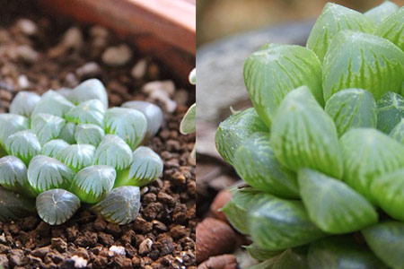 玉露是比较精致的一种多肉,它们种类特别多,而且叶片的上部透明。如果不注意的话,可能会认为叶片上有一滴露水。这种植物株型不大,一般植株只有几厘米的高度,但是植株却显得特别紧凑。它们的叶片只有几厘米的高度,但是会呈莲座排列,株型显得特别优美。
