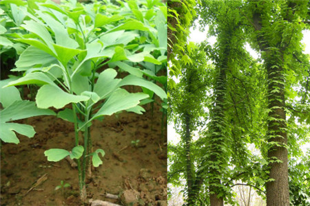 银杏树是植物中寿命较长的一种树木,由于它的生长速度非常慢,所以一般要生长20年以上才能结果;银杏树幼苗和其他的树木不一样,它的幼苗枝干比较细,但是树叶却像正常的银杏树叶差不多大;在它长大后,枝干会比较笔直,上下的粗细也差不多,就像是一件艺术品摆放在那里。