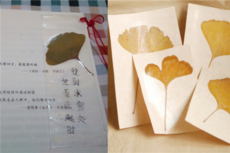 还可以捡一片你喜欢的银杏叶用透明胶带密封好,做成书签送给你喜欢的人,这样的书签不仅独特还满怀你的心意,还能防止书本长虫。