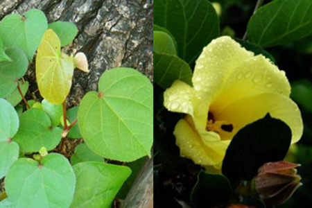 黄槿也是一种有心形叶子的植物,一般分布在南方地区。它的花是嫩嫩的黄色,被绿色的心形叶片衬托着,看起来很可爱,而且因为分布地区的缘故,全年都能开花,很适合观赏。黄槿不仅外形美观,而且也有药用价值,它可以清热解毒,治疗咳嗽、风寒等疾病。