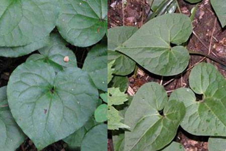 细辛是一种草本植物,它的叶子一般是绿色的,长得非常像心形,但是与前几种植物不同,它一般很少作为观叶植物。因为它的生长环境还是比较特殊的,一般只有在湿冷的腐殖土中才有可能看见它的身影。