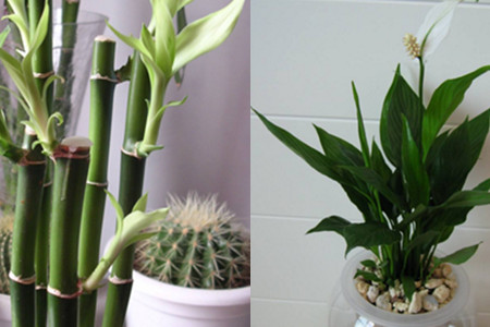 富贵竹:又名万寿竹,喜欢阴冷潮湿,抗旱耐涝,最常见是水养,隔几天就可换一次清水,保持水质新鲜,保持清洁,不然很容易烂根。不要放在空调、风扇旁等有风吹的地方,这样叶子会容易干枯。适合放在不常通风的如卧室的房间内,能够吸收废气,起消毒作用,改善环境。