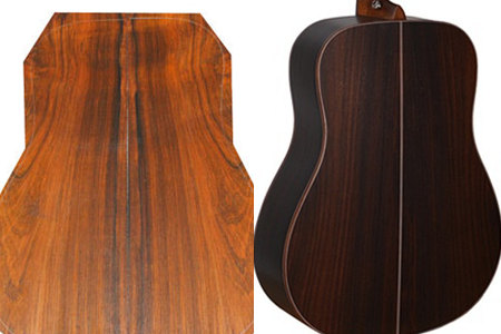 吉他除了可以用巴西玫瑰木和印度玫瑰木制作之外,还可以用可可菠萝和马达加斯加玫瑰木制作。只是后者是偏高频的玫瑰木。在这些玫瑰木中,使用巴西玫瑰木来制作是比较早的,现在较为普遍使用的是印度玫瑰木,可可菠萝玫瑰木和马玫可以算是小众玫瑰木。
