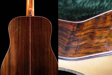 如果不喜欢玫瑰木制作的吉他,大家也可以选择用桃花木或者枫木制作出来的吉他,前者比较温润,后者比较空灵。