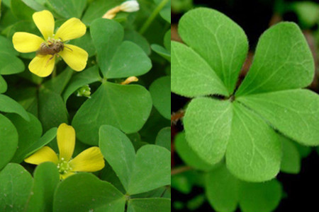 酢浆草,属多年生草本植物,叶片相连互生,3片倒心形小叶构成掌状复叶,全体长有柔软疏散的小毛,在环境潮湿、温暖、向阳的地方适宜生长,耐旱,不耐寒。