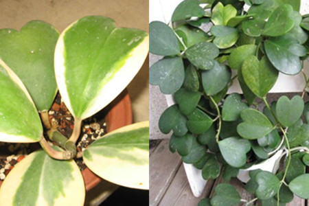 心叶球兰,属萝藦科植物,喜欢生长在潮湿的地方,形状像心形,所以被称为是“情人球兰”,种植土壤不注重肥沃,但要求疏松。茎和叶都为肉质,如果是盆栽种植,要放在半日阴或间接的光照的地方,并且经常要向叶面喷水。它生于低松林,在广西分布较为普遍。