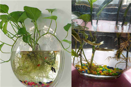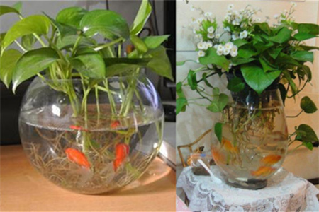 1、如果需要在鱼缸上种养绿萝,那么一定要选择大鱼缸。这样才可以让两者互相和谐地生存。