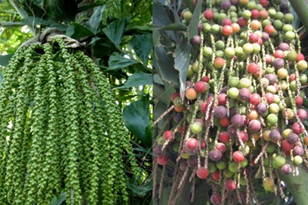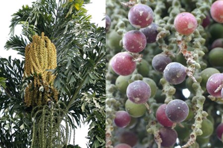 2、鱼尾葵的果实像球一样,而且还有着诱人的红色,但它的果实具有一定的毒性,它果实分泌出来的汁液会让你的皮肤齐痒无比,所以如果你吃下去了,你可以想一下后果。