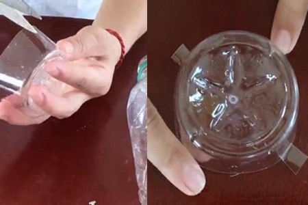 1.将剪好的瓶子四周剪四个口子,目的是让它更好的贴附住花瓶,起到固定的作用。