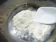 3.将面粉放在一个大盆中,放一点食盐在面粉中,放一勺白砂糖。