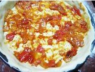 9.在面饼上涂抹上一层自制的披萨酱。