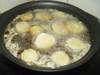 3、油温不过过低的时候放入,可以先滴入少许面糊,能够迅速起起泡,浮起,即可放入茄盒。