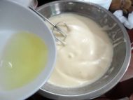7.倒入玉米油,继续搅打。