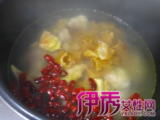 7 将所有材料放入汤煲内,调入适量的料酒。