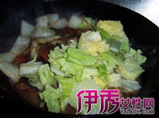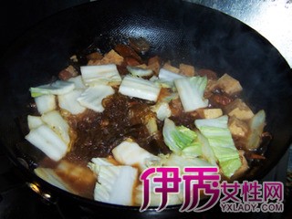 加入粉条后要注意搅拌,粉条很容易粘锅,白菜的帮和叶最好要分开加入锅中。