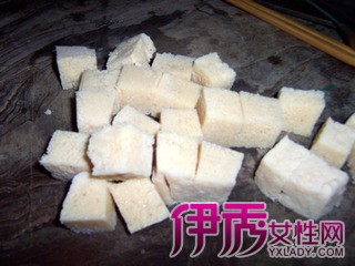 切冻豆腐时要小心,以免上手。冻豆腐要化开再切,