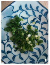 2 葱切成粒待用。