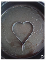 7 心型模具内侧刷上油,然后放入锅里。