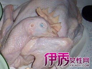 1 三黄鸡洗净,去掉内脏和鸡油。