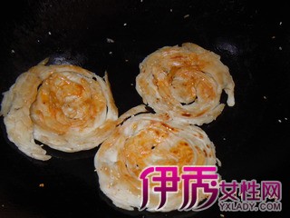 15 热锅 下饼。一面微黄翻面。烙饼的时候一边压 一边抓散。