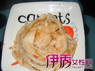 12 把薄面皮一层层折叠起来,一边抹油一边折叠。