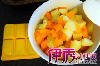 4 将煮好的土豆胡萝卜从水中取出,待用。